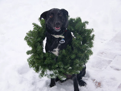 I also didn't waste anytime decorating the dog. Since Lucy's Christmas sweater didn't fit her this year, I went for some reindeer antlers instead. She even left a Santa hat on her head long enough for me to snap a picture.